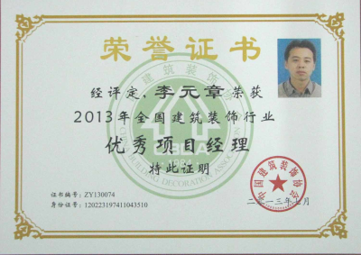 全國(guó)優秀項目經理(lǐ)-李元章(zhāng)(2013年(n₽↑↕ián)度)