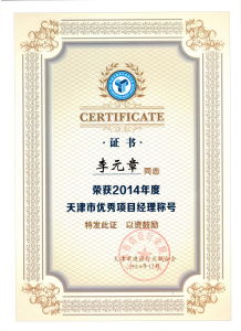 天津市(shì)優秀項目經理(lǐ)—李元章(≠↓≠zhāng)(2014年(nián)度)