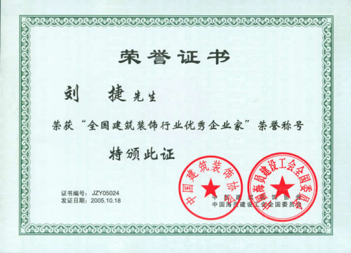 建築裝飾行(xíng)業(yè)優秀企業(yè)©∏家(jiā)(2005年(nián)度)