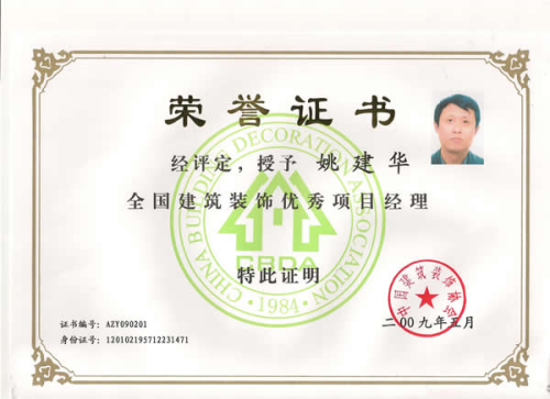 優秀項目經理(lǐ)-姚建華(2009年(ni§≈án)度)