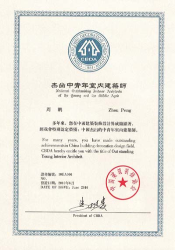 傑出中青年(nián)室內(nèi)設計(jì)師(shī)-周鵬ε®©$(2010年(nián)度)