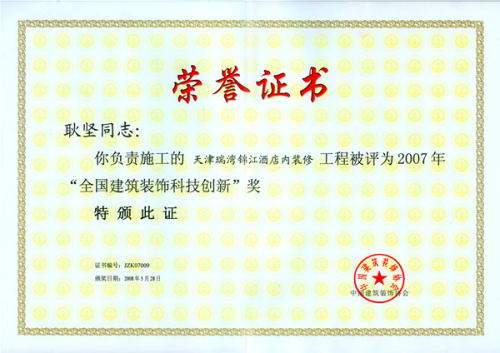 瑞灣酒店(diàn)科(kē)技(jì)創§<新獎 - 耿堅(2007年(nián)度)