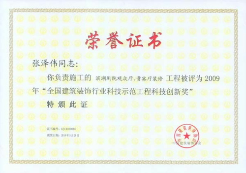 濱湖(hú)劇(jù)院科(kē)技(jì)創新獎-張澤偉(2009γλ♠年(nián)度)