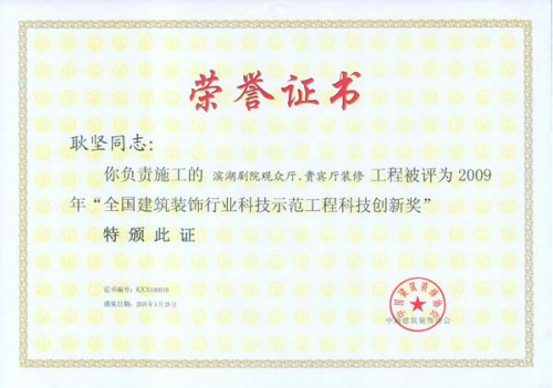 濱湖(hú)劇(jù)院科(kē)技(jì)創新獎-耿堅β±<(2009年(nián)度)