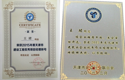 天津市(shì)建設工(gōng)程優秀項目經理(lǐ)-王珺(≠♦λ>2015年(nián)度)