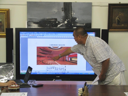 &nb→♥↔₽sp; 圖3 翟總講解《天津大(dà)劇(jùγ)院歌(gē)劇(jù)廳聲學設計(jì)施工(gōng)》