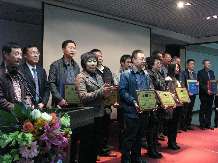 ₹✘♣★在中國(guó)可(kě)持續裝飾裝修示範項目頒獎儀式中,主辦方為(wèi™✘)我公司張澤偉經理(lǐ)頒發了(le)《歐盟SWITλ£ CH—Asia可(kě)持續裝飾裝修示範項目》的(de)獎狀和(hé)獎牌。