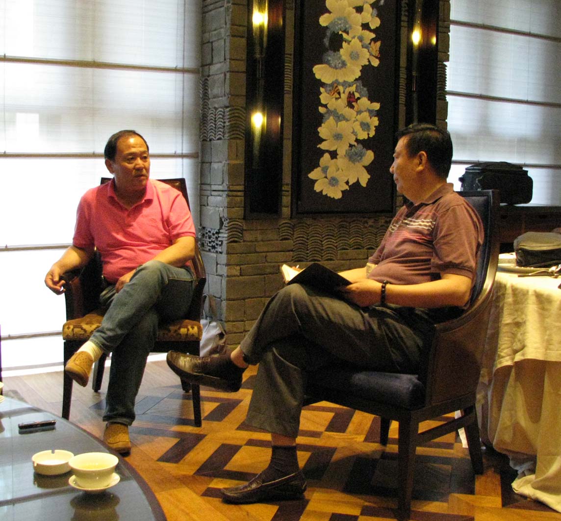圖 《中國(guó)建築裝飾裝修》雜(zá)志(zh¶ ♣÷ì)社記者與我公司領導正在交談