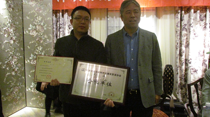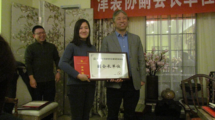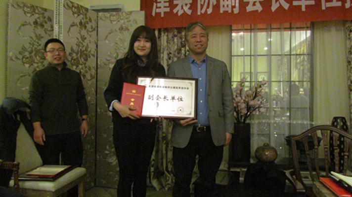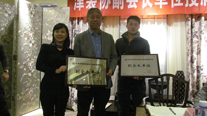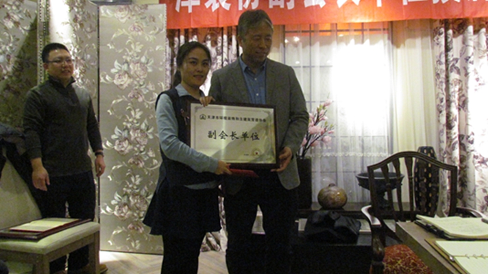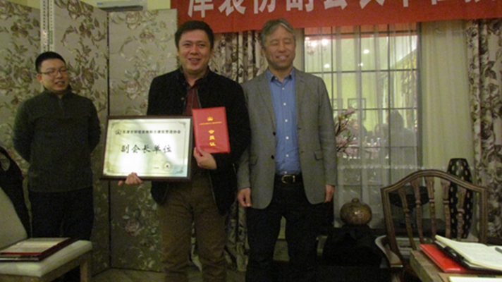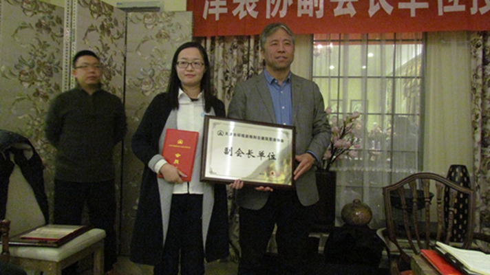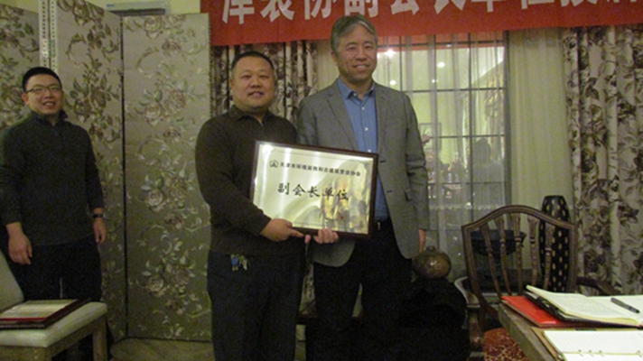 天津市(shì)環境裝飾和(hé)古建築營造€&σ協會(huì)會(huì)長(cháng)徐林(↔≠ lín)晞先生(shēng)對(duì)會(huì)長(cháng)單π→£位、副會(huì)長(cháng)單位授牌。