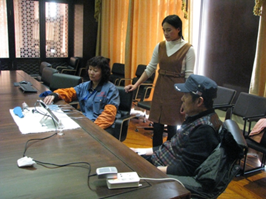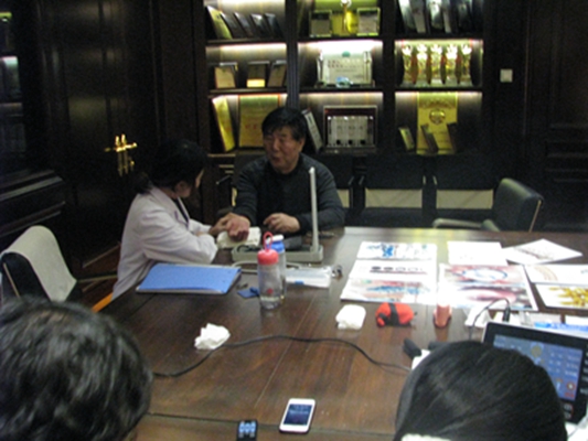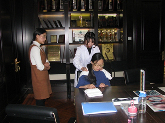 ☘公司本部員(yuán)工(gōng)排隊進行(xíng)體(tǐ)檢§,效果甚佳。理(lǐ)療師(shī)根據患者不(bù)同的(de)病症→>φφ,進行(xíng)針灸、按摩等健康治療。