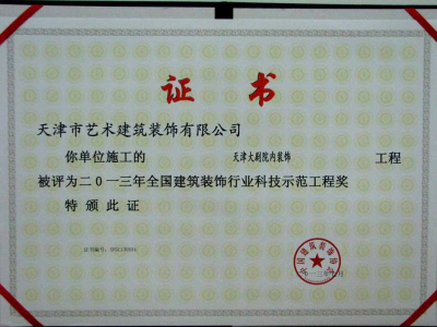 科(kē)技(jì)示範工(gōng)程獎(天津 ✔&大(dà)劇(jù)院內(nèi)裝飾)