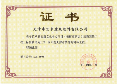 新文(wén)化(huà)中心項目(悅榕莊酒店(diàn©★Ω))(2014年(nián)度)-海(hǎi)河(hé)杯